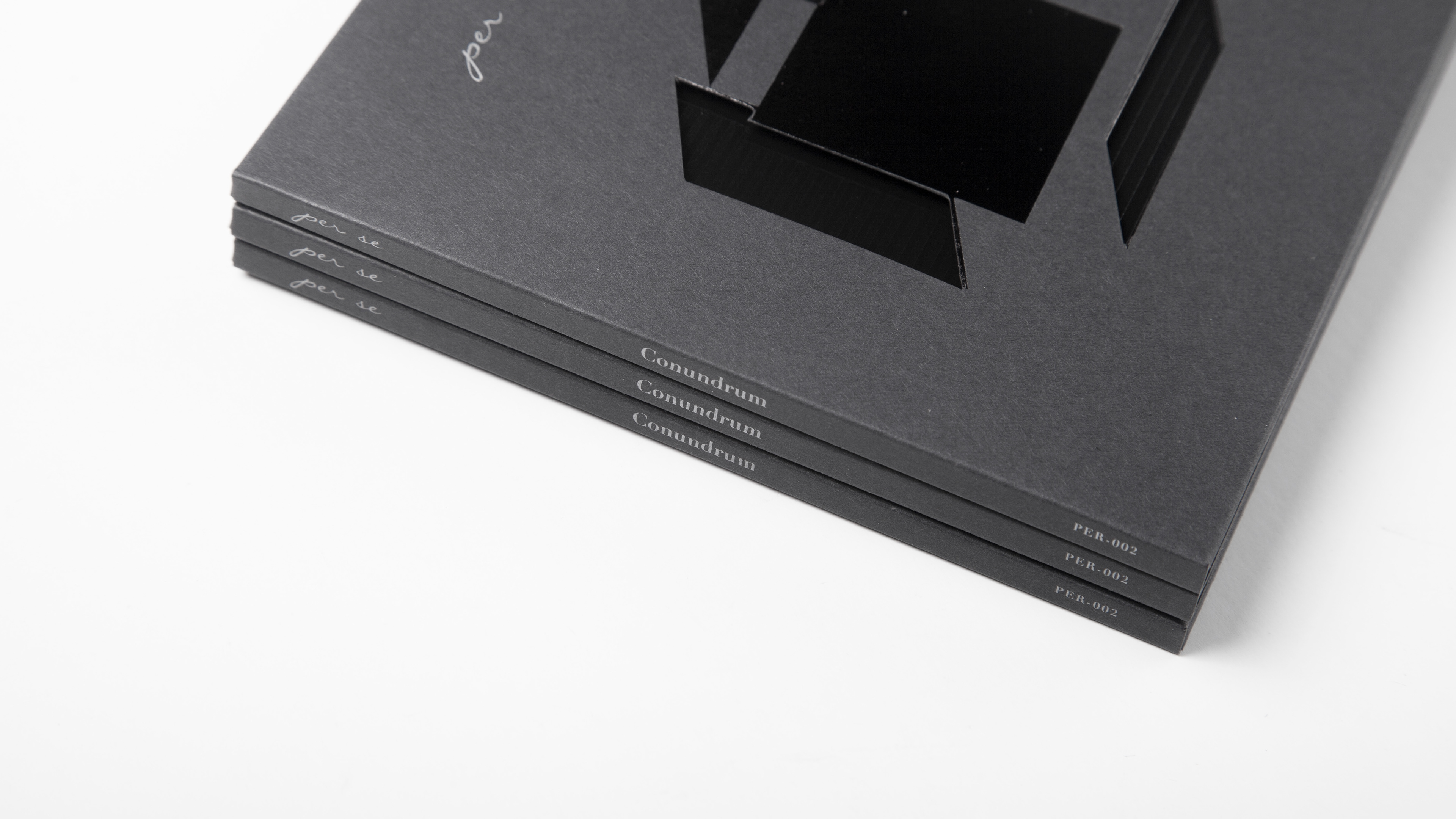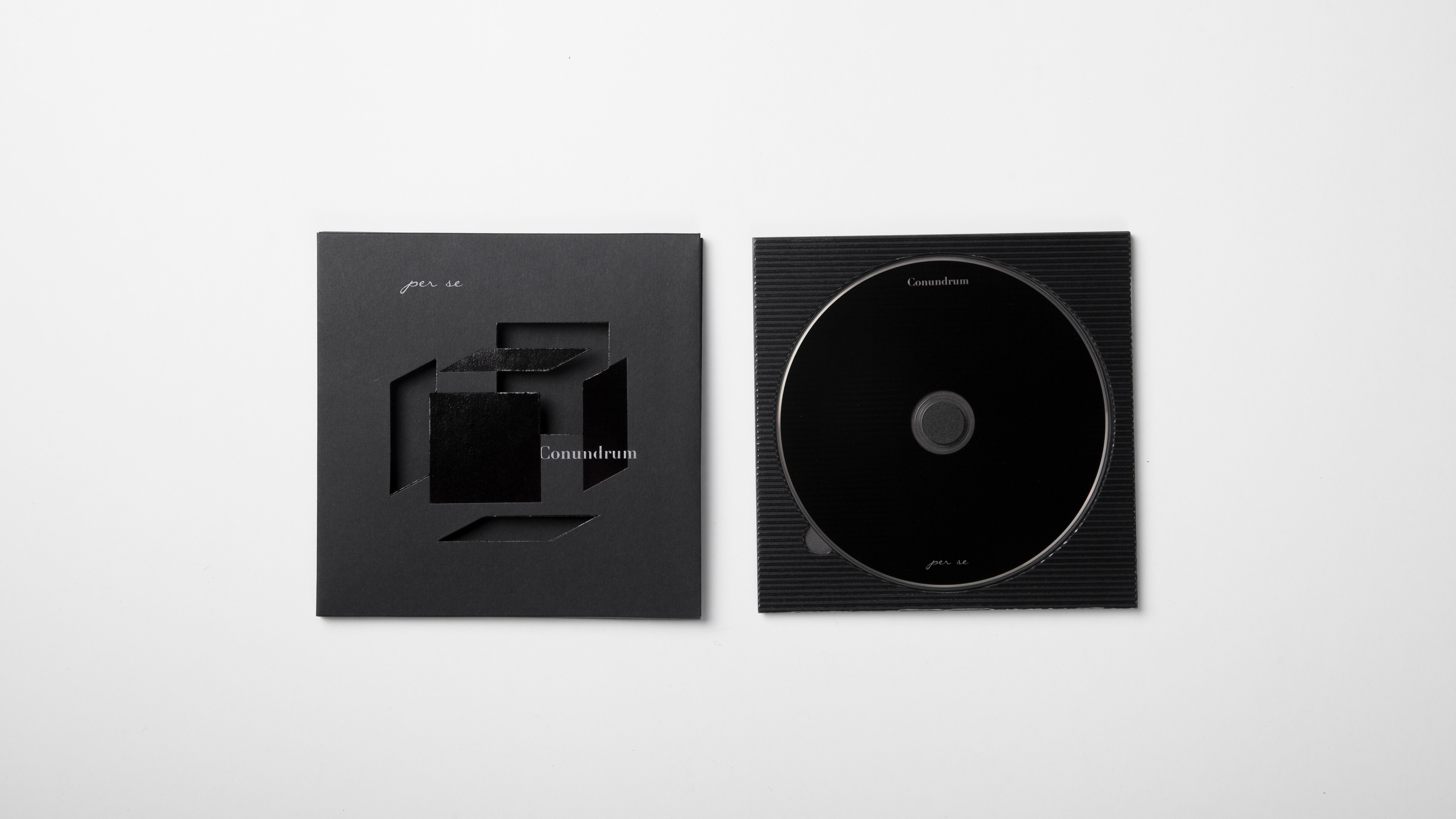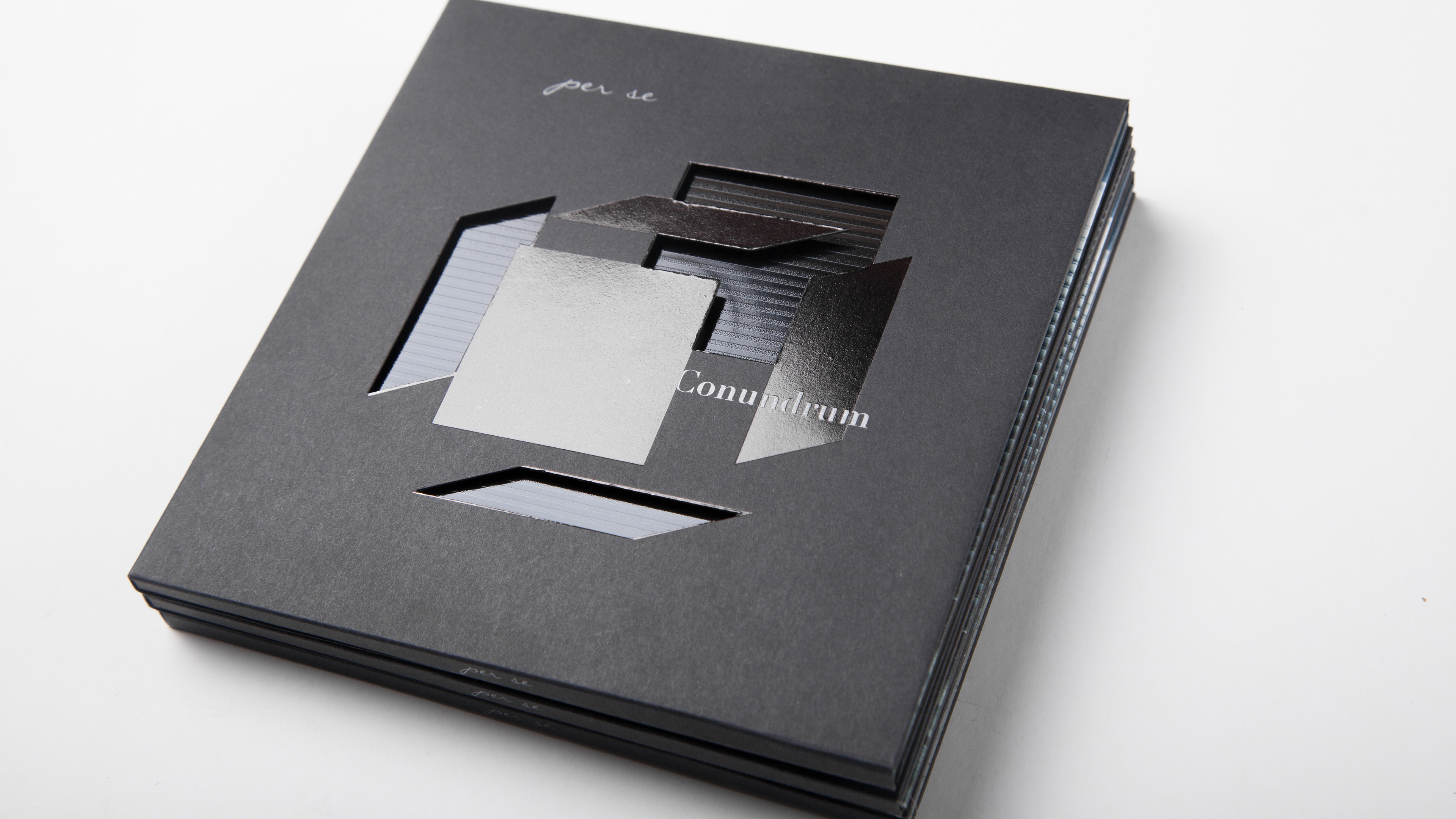 我們為香港樂隊 per se的專輯《Conundrum》設計唱片封套和紀念品。專輯圍繞人生遇到的六大難題創作,我們用正方體的六面作呼應。我們在各部分細節里融合“瑕疵”元素,完美主意者會被喚起其“強迫症”,用意象征人生,儘管每人都希望人生軌跡可以按自己意思進行,但總會有瑕疵,這些“瑕疵”到最後組成了你。